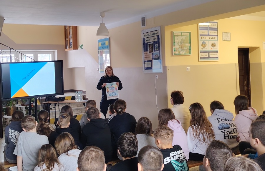 Policjanci proszowickiej Policji przeprowadzili prelekcje w Szkole Podstawowej w Kościelcu i Klimontowie na temat przemocy rówieśniczej. Spotkanie było także dobrą okazją do promowania akcji prewencyjnej „Bezpieczne Ferie 2026”.