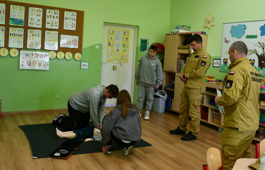 - udzielanie pierwszej pomocy w ramach zainscenizowanej scenki